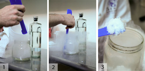 冷卻液。1)從液氮開始,倒入液體。2)劇烈攪拌直至霧氣消散。3)瞧!