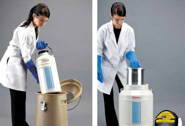 液相液氮罐細(xì)胞儲存在液氮液面以下,氣相液氮罐液氮在罐體外壁,里面是氣相,細(xì)胞儲存在氣相里。從外觀上看的話,氣相液氮罐上有壓力表和一些閥門。液相液氮罐細(xì)胞儲存在液面下,溫度為-196度,氣相的比他略高,約為-190度。氣相液氮罐細(xì)胞之間交叉污染的可能性較小。